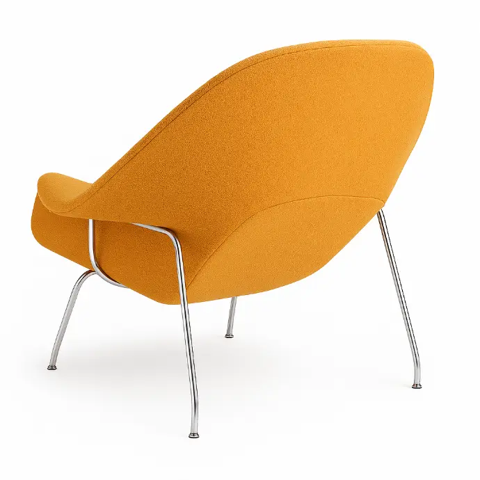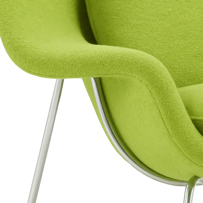 Der Womb Chair verfügt über eine glasfaserverstärkte Sitzschale, die vollständig mit hochwertigem Kaschmirstoff bezogen ist. Die Polsterung ist in mehreren Farben erhältlich und mit Schaumstoff unterschiedlicher Dichte gefüllt, der für mehr Widerstandsfähigkeit und Komfort sorgt. Das Gestell besteht aus polierten Edelstahlrohren mit korrosionsbeständiger Oberfläche, die für Stabilität und Eleganz sorgen.