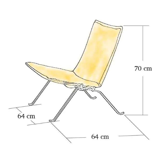 Der PK22 Lounge Chair verfügt über einen Rahmen aus gebürstetem Edelstahl mit satinierter Oberfläche, der korrosions- und verschleißfest ist. Sitz und Rückenlehne sind mit hochwertigem Anilinleder bezogen, handgeschnitten und präzise sattelgenäht. Die Kombination aus kühlem Metall und warmem Leder veranschaulicht Kjærholms raffinierte Balance zwischen industrieller Struktur und natürlicher Materialität.