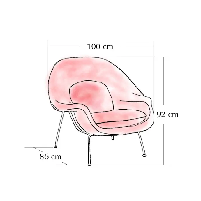 Das Kissen ist handgepolstert und mit fein gewebtem Kaschmir bezogen, mit verstärkten Nähten für mehr Haltbarkeit. Der Rahmen wird von einem röhrenförmigen Edelstahlsockel getragen, der für strukturelle Stabilität geschweißt und poliert ist. Das Design spiegelt die Linien des Womb Chair wider und schafft so ein stimmiges und ausgewogenes Set.