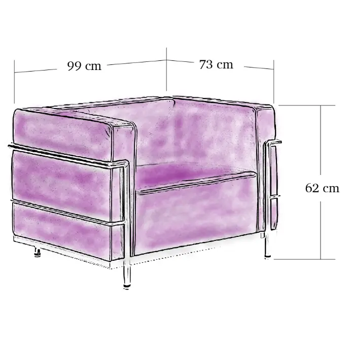 Compared to the LC2, the LC3 offers deeper and broader cushions, delivering a more relaxed and lounge-oriented seating comfort. The removable cushion system allows easy maintenance and replacement. Its compact yet generous proportions make it suitable for both residential and contract interiors. The armchair combines architectural presence with functional ergonomics, adapting effortlessly to modern living environments.