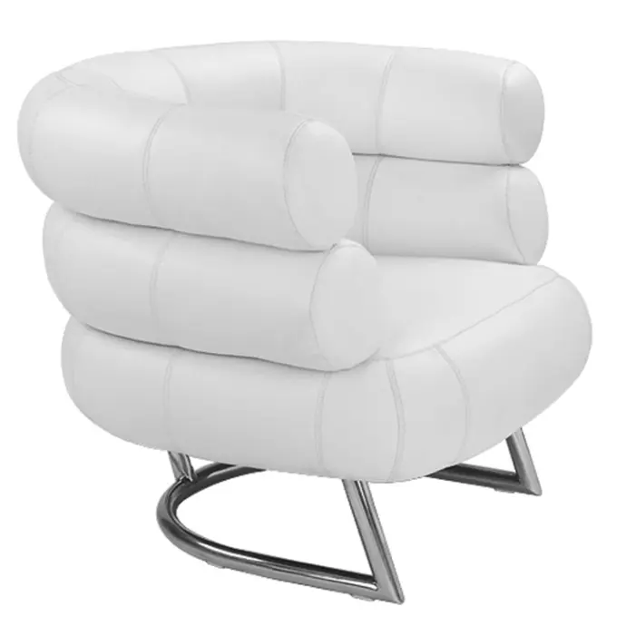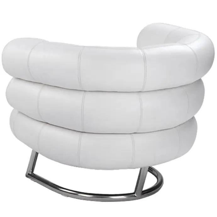 The Bibendum Chair features a polished chrome tubular steel frame, resistant to scratches and corrosion. Its distinctive backrest consists of two oversized, semi-circular rolls, heavily padded and upholstered in high-quality aniline leather. The seat cushion is equally padded with polyurethane foam, ensuring both resilience and comfort. The combination of steel structure and voluminous leather elements embodies Eileen Gray’s modernist approach to form and luxury.