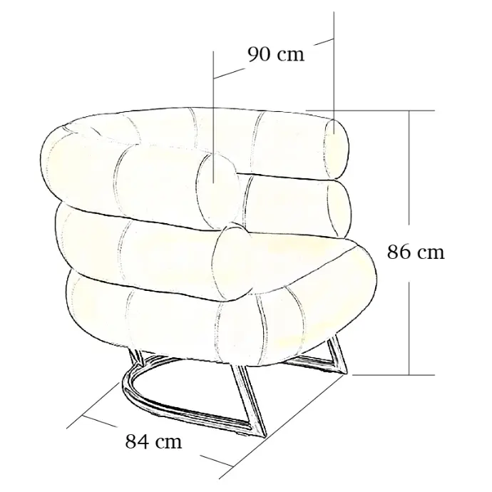 The supporting frame is made from precision-bent tubular steel, welded and polished to maintain stability while retaining a light geometric appearance. The cylindrical leather rolls are mounted horizontally onto the frame and stitched with reinforced seams for durability. The seat and backrest are supported by concealed connections, keeping the chair’s sculptural design uninterrupted. Rounded edges and seamless joints enhance longevity and user safety.