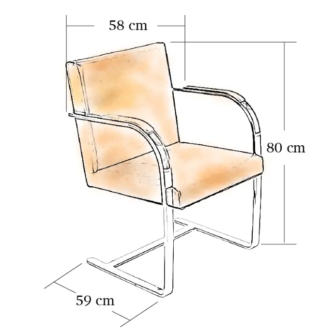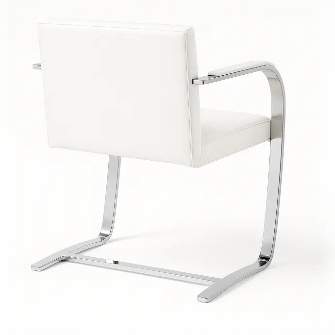 The cantilever design introduces a slight spring effect, enhancing seating comfort compared to rigid chairs. The padded leather seat and backrest adapt to the user while maintaining shape over time. Lightweight and freestanding, the Brno Chair can be moved easily and integrates seamlessly into dining, office, or conference settings. Its balance of comfort, minimal form, and technical clarity makes it a lasting Bauhaus classic.