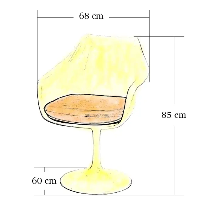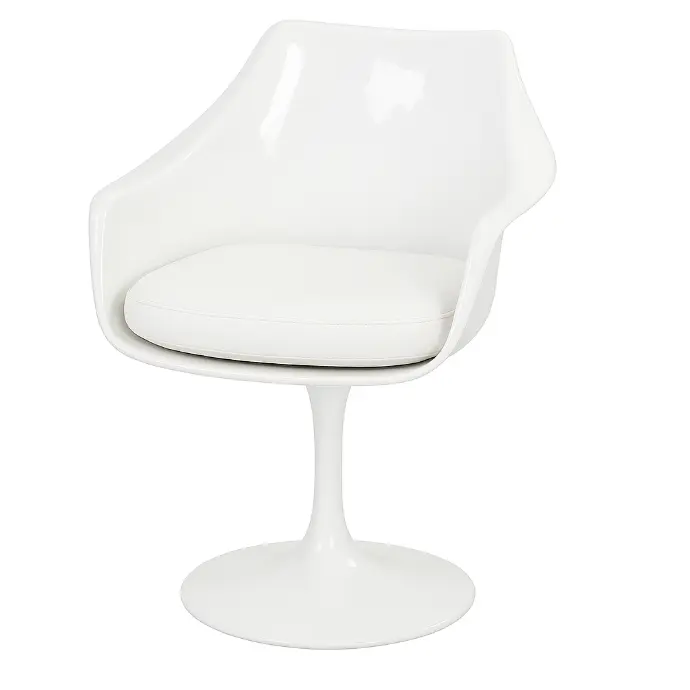 The chair offers ergonomic support through its enveloping armrests and contoured seat shell. The padded cushion enhances comfort, making the chair suitable for extended dining or meeting use. The pedestal design eliminates the clutter of four legs, maximizing flexibility around tables. Lightweight yet robust, the Tulip Armchair combines comfort, functionality, and iconic modernist elegance, often paired with Saarinen’s Tulip Tables.