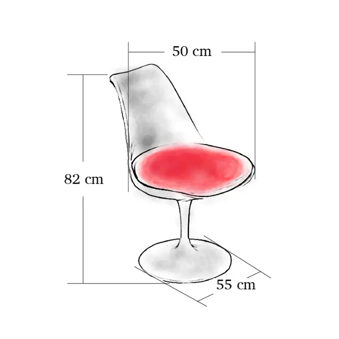 The contoured seat shell provides ergonomic comfort despite its minimalist form, while the padded cushion enhances softness and resilience. The pedestal base eliminates the clutter of traditional legs, offering maximum legroom and flexibility around dining or conference tables. Lightweight and versatile, the Tulip Side Chair integrates seamlessly into modern interiors, often paired with Saarinen’s Tulip Tables.