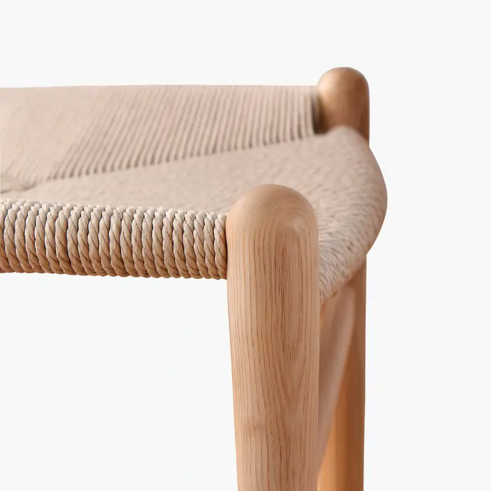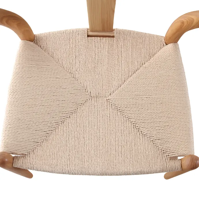 The frame is constructed with precision joinery, including mortise and tenon connections for structural strength. The characteristic Y-shaped backrest is steam-bent to provide ergonomic support and visual balance. The seat is hand-woven from durable paper cord, consisting of more than 120 meters of tightly braided fiber for long-lasting flexibility and comfort. Each chair is assembled and finished by hand to maintain exact proportions and lasting stability.