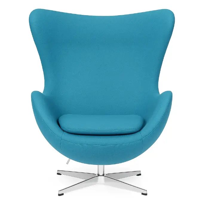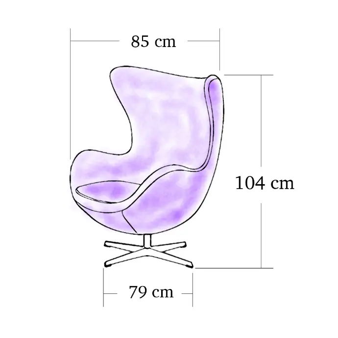 The Egg Chair features a fiberglass-reinforced shell, fully upholstered in premium Cashmere Blend. The fabric is hand-stitched and fitted over molded foam padding, ensuring durability and comfort. The base is a polished aluminum swivel and tilt mechanism with a four-star design, resistant to scratches and corrosion..