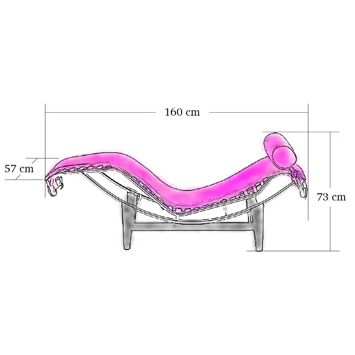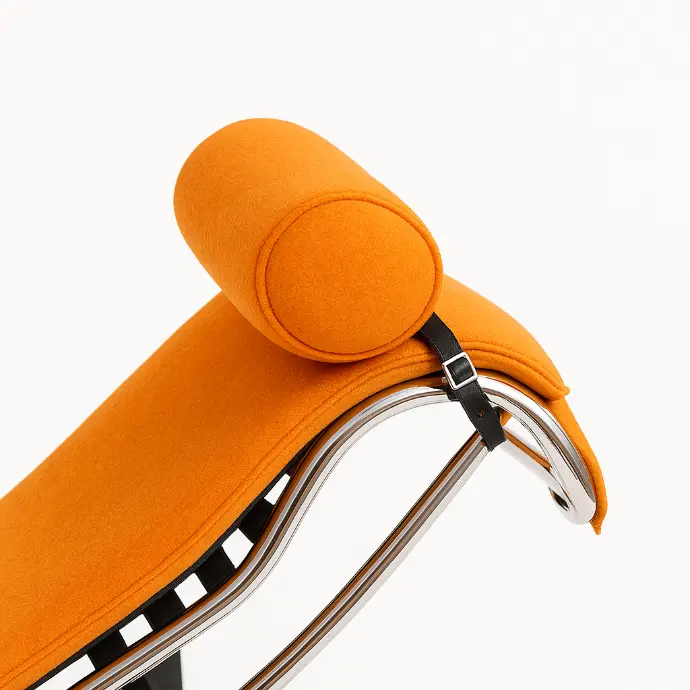 The lounger adapts naturally to the human body, offering continuous ergonomic support from head to legs. Its reclining angle can be adjusted without mechanical locks, relying on balance between cradle and base. A padded leather headrest cushion provides additional comfort. The combination of flexible support, durable materials, and iconic form makes the LC4 suitable for both private and public interiors.