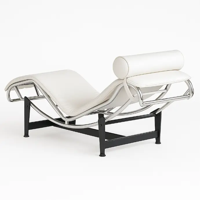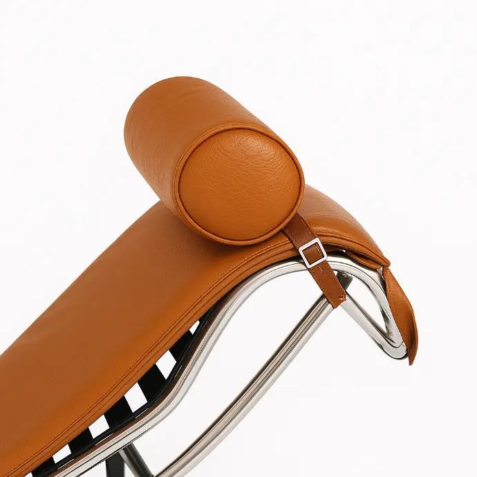 The lounger adapts naturally to the human body, offering continuous ergonomic support from head to legs. Its reclining angle can be adjusted without mechanical locks, relying on balance between cradle and base. A padded leather headrest cushion provides additional comfort. The combination of flexible support, durable materials, and iconic form makes the LC4 suitable for both private and public interiors.