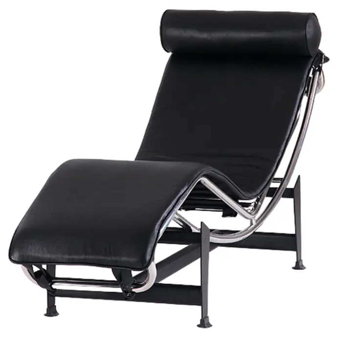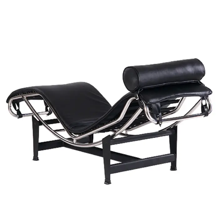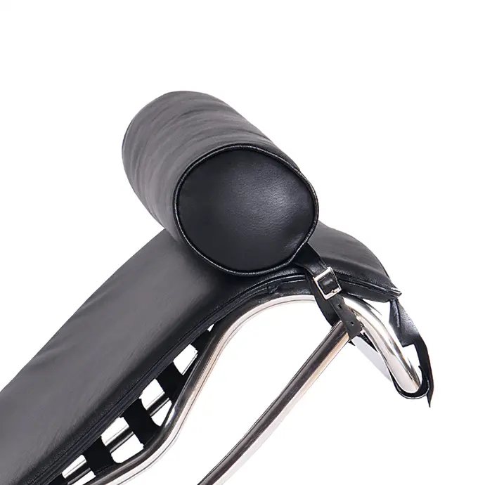 The lounger adapts naturally to the human body, offering continuous ergonomic support from head to legs. Its reclining angle can be adjusted without mechanical locks, relying on balance between cradle and base. A padded leather headrest cushion provides additional comfort. The combination of flexible support, durable materials, and iconic form makes the LC4 suitable for both private and public interiors.