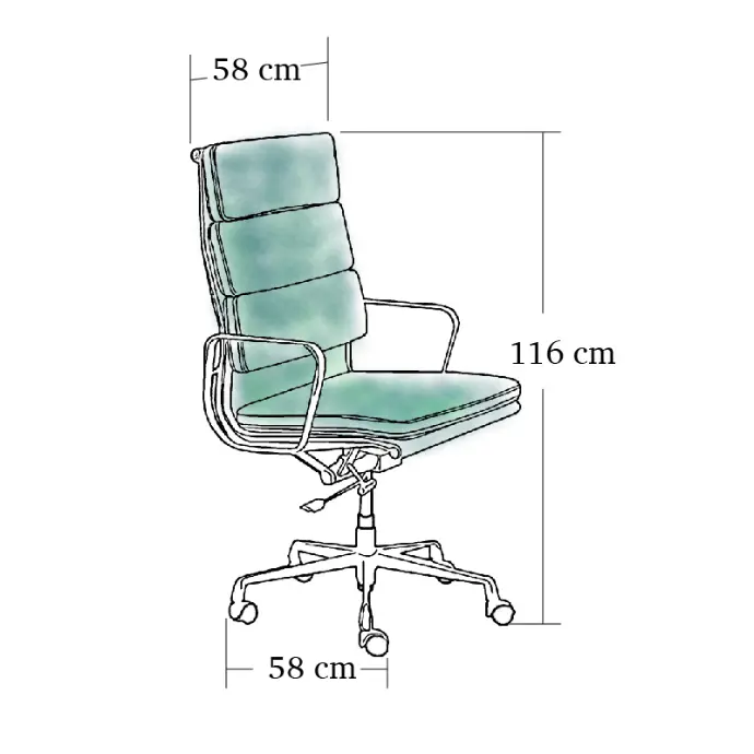 Compared to the Hard Pad version, the Soft Pad Chair offers a more cushioned, lounge-like seating comfort while retaining firm ergonomic support. Adjustable height and tilt ensure adaptability for different users and tasks. The padded leather surfaces provide comfort for extended use in offices, conference rooms, or home workspaces. Its blend of luxury, durability, and modernist clarity makes it one of the most versatile designs in the EA series.