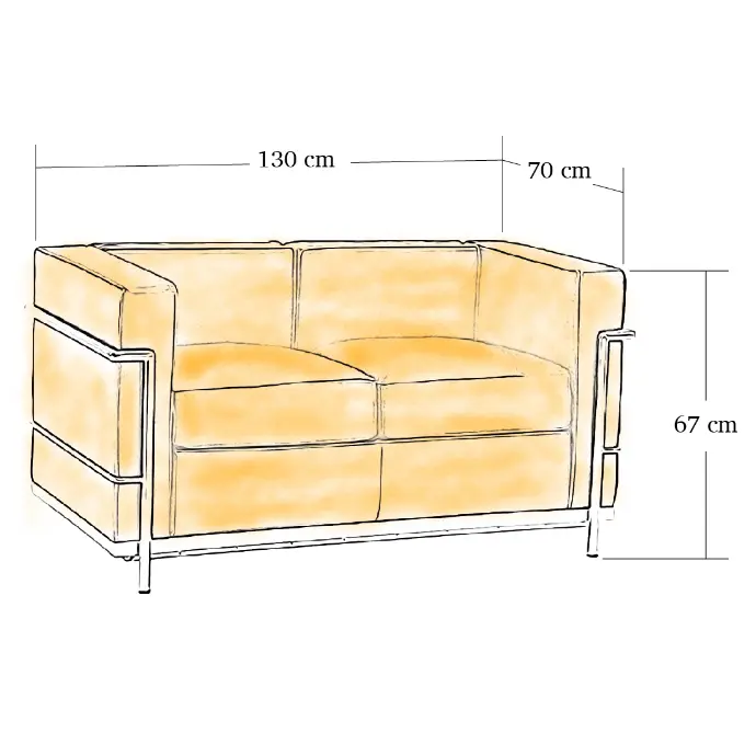 The LC2 Sofa is constructed with a visible tubular steel frame in polished chrome, providing corrosion and scratch resistance. The cushions are upholstered in high-quality Cashmere Blend, with a choice of black or natural tones, and filled with polyurethane foam for resilient comfort. The juxtaposition of Fabric and steel embodies the Bauhaus ideal of clarity, function, and honesty in materials