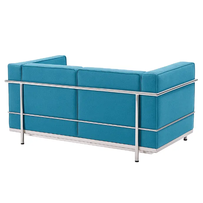 The Sofa consists of a cubic frame of precision-bent tubular steel with welded joints, enclosing the cushions rather than supporting them from within. This external structural logic ensures stability while preserving the lightweight, geometric form. The cushions are saddle-stitched and reinforced at seams to withstand long-term use. Rounded steel edges and seamless joints contribute to both durability and visual refinement.