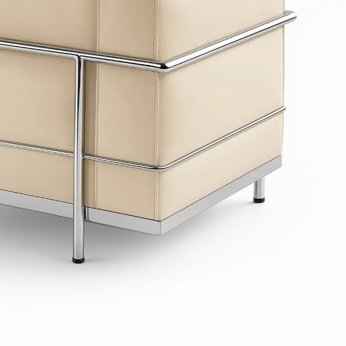 Compared to the LC2, the LC3 offers deeper and broader cushions, delivering a more relaxed and lounge-oriented seating comfort. The removable cushion system allows easy maintenance and replacement. Its compact yet generous proportions make it suitable for both residential and contract interiors. The armchair combines architectural presence with functional ergonomics, adapting effortlessly to modern living environments.
