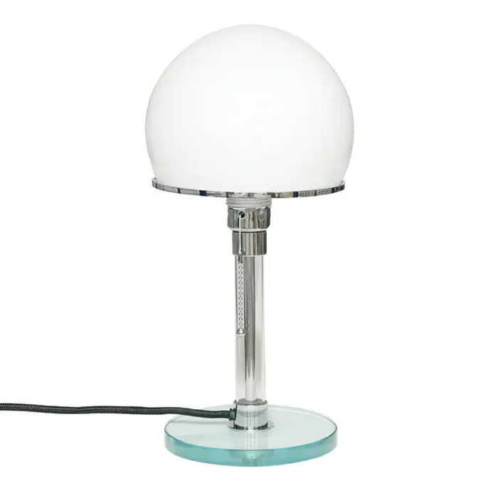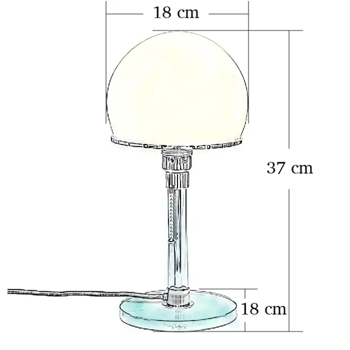 The lamp produces warm, glare-free illumination suitable for desks, side tables, or nightstands. Its compact proportions and timeless design make it versatile for residential and professional interiors. Easy to maintain and clean, the Wagenfeld Lamp remains both a functional lighting solution and an enduring Bauhaus icon.
